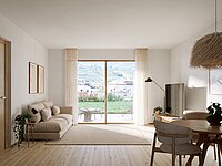 schöner Blick auf die umliegende Berglandschaft gegeben ist. Gleichzeitig sorgt die Ausrichtung des Grundstücks für großzügige Privatgärten und eine offene, helle Wohnatmosphäre.